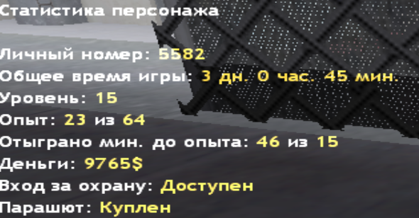 3. Скриншот Статистики персонажа -